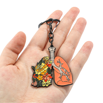 LLavero de órgano pulmonar humano creativo, llavero de diseño de mariposa y Flor de arte corporal esmaltado de Metal con patrón Floral único